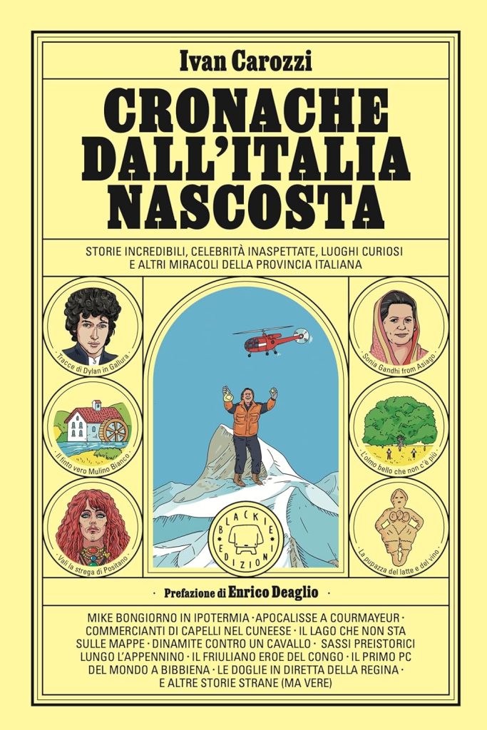 Aneddoti, leggende, storie, storielle, storiacce su luoghi dimenticati, fuori dalle rotte del turismo di massa che intasano instagram. Cronache dall’Italia nascosta è una specie di grand tour alternativo messo insieme da Ivan Carozzi, battendo strade e stradine diverse da quelle percorse in precedenza da prestigiosi autori tra cui Stendhal, Bakunin o anche solo dal più contemporaneo Philippe Daverio. Ogni luogo di questa specie di almanacco – che da lontano ricorda il Manuale delle giovani marmotte – contiene una o più microstorie di tre/quattro pagine che fanno da ponte tra passato e presente. Pillole dense, ma agili, visto che si leggono in cinque minuti. Carozzi infarcisce le sue storie con rimandi a libri, film, architetture, opere d’arte, trovando connessioni spazio-temporali al limite della psichedelia. In questa serie di flash caleidoscopici emerge tutta la curiosità che anima il lavoro di scrittura dell’autore: una ricerca pop, anticonformista, che rifugge i luoghi comuni e comunemente bazzicati per cercare il non visto, il non detto, lo sfuggente, il rimosso, l’obsoleto. Al di là dell’effetto nostalgia canaglia, questo libro racconta storie miracolose della provincia italiana che altrimenti andrebbero perse nel “rumore di fondo” generato dei grandi centri che fanno scomparire dalle mappe – vere, virtuali e mentali di ognuno di noi – una parte importantissima della storia del nostro amato/odiato paese, la cui provincia pulsa di vita.